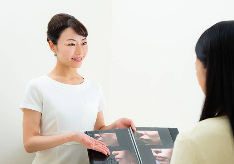 ダウンタイムや施術について、不安があればカウンセラーにおたずねください。その際、お見積りの伝票をお持ちしますので、ご予算についても気軽にご相談ください。 -